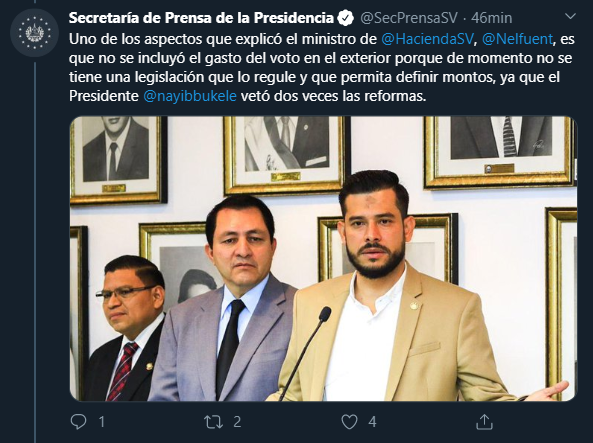 Ayer, el magistrado Guillermo Wellman aseguró que no estaban “satisfechos” con los fondos que iban hacer otorgados. “Nunca vamos estar satisfechos porque si nosotros queremos hacer una buena elección transparente, justa y expedita, vamos a tener que hacer recorte a algunos del programa del plan”, señaló. Sin embargo, en la entrega del proyecto estuvo presente la presidenta del TSE, Dora Esmeralda Martínez, y urgió a los diputados aprobarlo «en el menor tiempo posible».