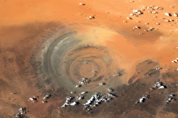 Imágenes desde el espacio revelan la cara más marciana del Ojo del SáharaThomas Pesquet, astronauta francés de la Agencia Espacial Europea (ESA) ha compartido en su cuenta de Twitter nuevas imágenes del llamado ‘Ojo del Sáhara’ en África occidental sacadas a más de 400 kilómetros sobre la superficie de la Tierra desde la Estación Espacial Internacional (EEI).