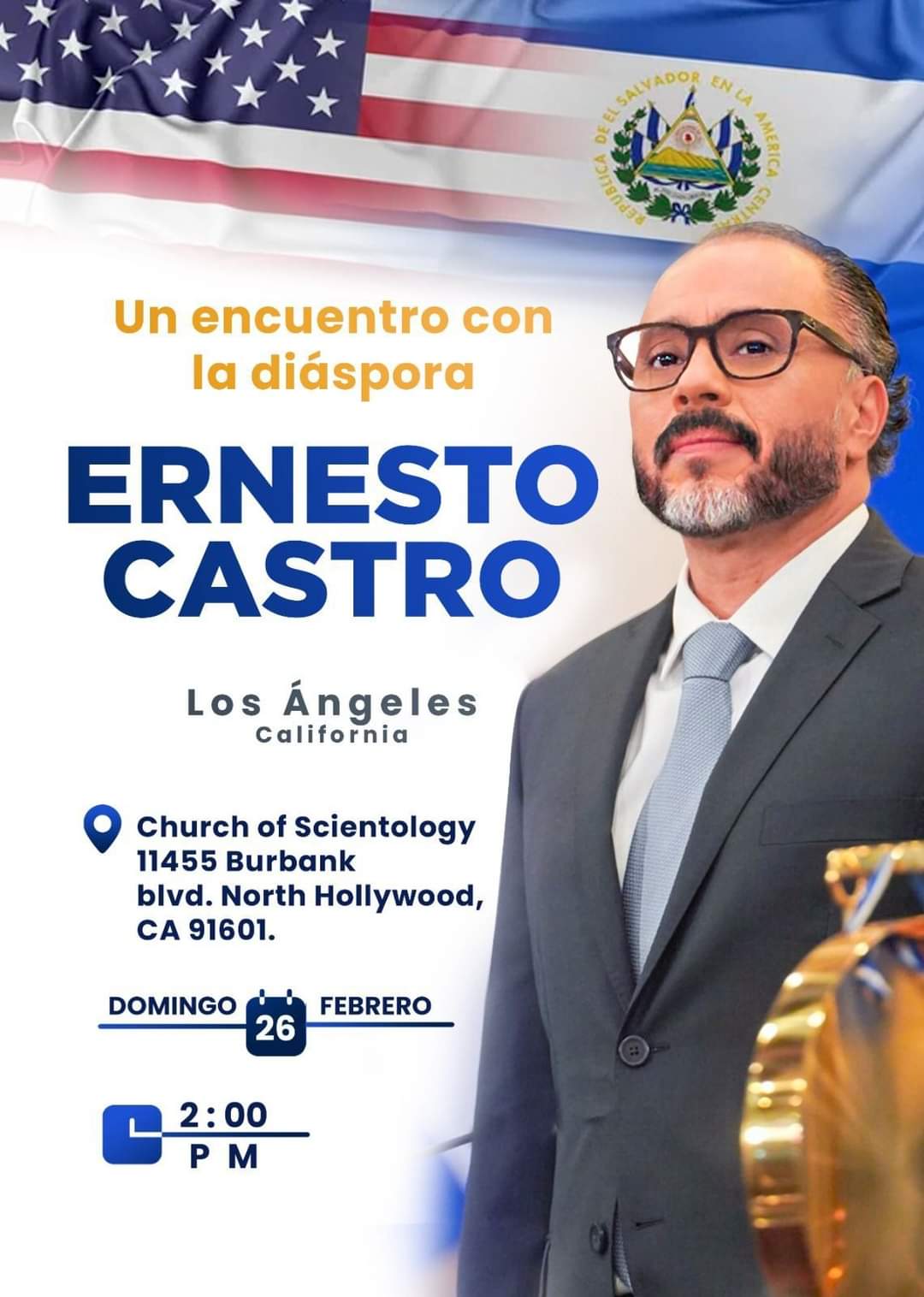 Previo a esta visita a Los Ángeles, Ernesto Castro anunció que buscará la reelección como diputado por San Salvador para la próxima elección periodo 2024-2027 que se realizará el domingo 4 de febrero de 2024.