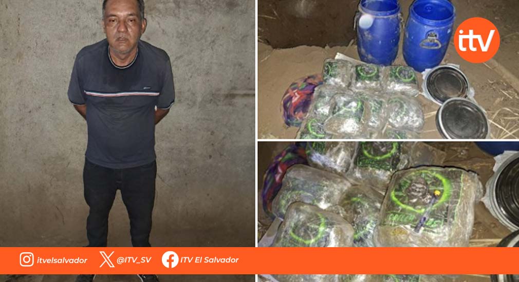 La Policía Nacional Civil, a través de X, dijo que José Cándido Palma Orellana, fue capturado por la División Antinarcóticos, en el cantón El Niño, de San Miguel, tras incautarle, en dos barriles plásticos, 10 paquetes de droga, que tenía enterrados en un cañal ubicado en la misma ciudad.