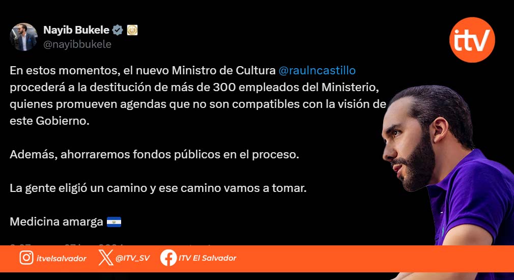 El presidente de El Salvador, Nayib Bukele, anunció el jueves el despido de más de 300 empleados del Ministerio de…