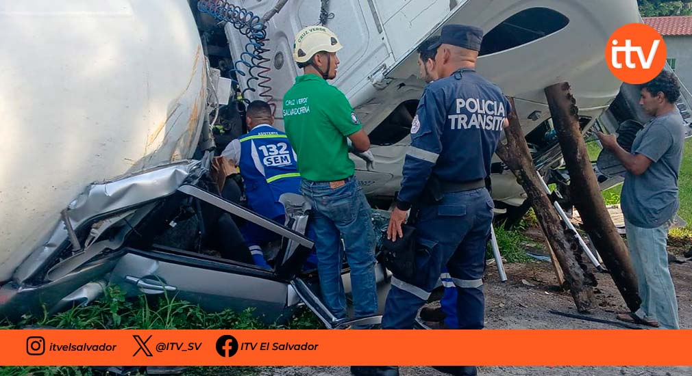La Policía Nacional Civil (PNC) reportó un grave accidente de tránsito registrado en el kilómetro 126 de la carretera Panamericana, a la altura del desvío hacia Moncagua, en San Miguel Centro. El percance involucró a un vehículo particular y una pipa que transportaba gas propano, la cual terminó volcada tras el impacto.
