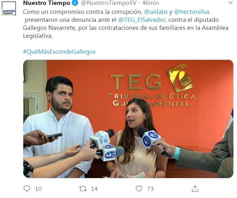 Partido Nuestro Tiempo denuncia a diputado Gallegos por contrataciones de familiares en Asamblea Legislativa